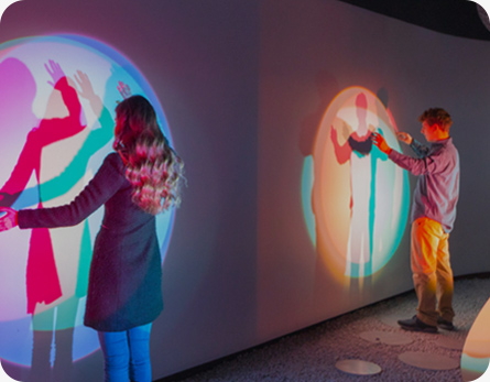 數(shù)字技術(shù): 感應(yīng)觸點(diǎn)裝置 、 弧幕影院 、 互動(dòng)裝置等
